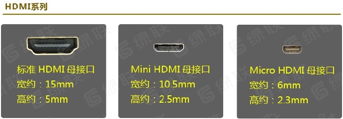 常见的HDMI接口有3类,如上图示。